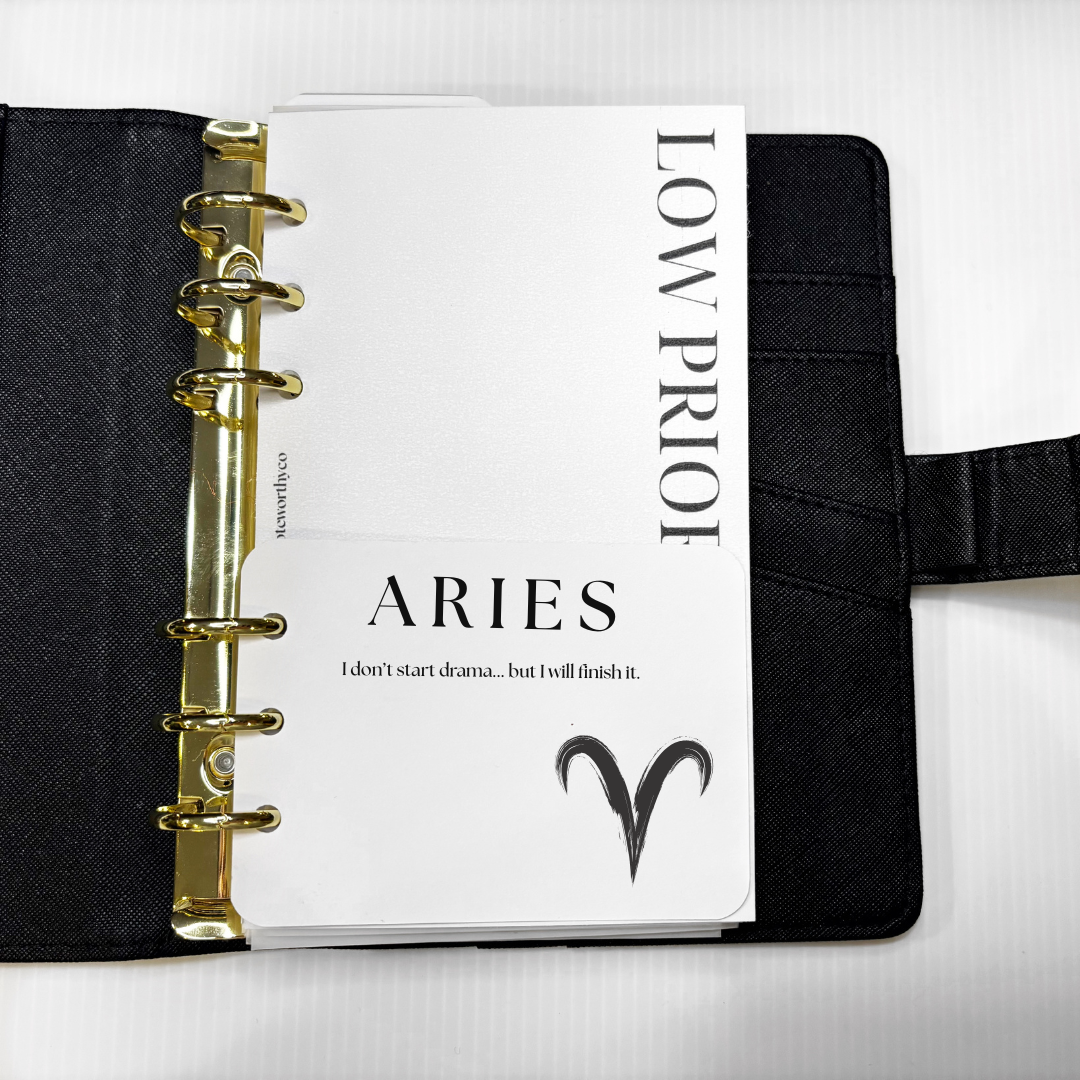 Add a little star power (and a lot of personality) to your binder with our Zodiac dashboards. Each sign comes with its own unapologetic quote—equal parts aesthetic and attitude—to match your energy. Designed to be sleek, sassy, and totally unfiltered, these inserts aren’t just pretty inserts… they’re a daily reminder that your sign speaks louder than words